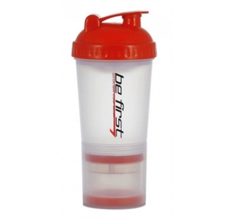 Компания Be First, лидер по производству аксессуаров для фитнес-индустрии, выпустила на рынок спортивного питания очередную новинку –спортивный шейкер объемом 600 мл с дополнительными отделениями. Он является самым оптимальным аксессуаром для спорта, фитнеса и кулинарии, объединяет в себе многофункциональность применения в повседневной жизни, во время путешествий, на отдыхе и на кухне, став превосходным помощником для человека, ведущего активный образ жизни. Он имеет поистине неограниченные возможности. При производстве этого шейкера компания использовала экологически чистый для человека пластик BPA FREE. В комплектации есть дополнительный контейнер, прикручивающийся ко дну шейкера, в котором можно транспортировать и хранить порошок, капсулы или таблетки, что делает его Вашим помощником на тренировке. В отличие от шейкеров других производителей, в нашем шейкере есть дополнительный контейнер в контейнере. В прикручивающемся контейнере вы можете хранить дневную порцию гейнера или протеина, а второй контейнер использовать отдельно как кейс для таблеток или капсул.