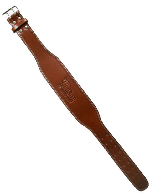 Пояс тяжелоатлетическиий из натуральной кожи, на пряжке 2 штыря, с подкладкой для спины, коричневого цвета. Широкая спина 8 см и узкая передняя часть 6 см.
