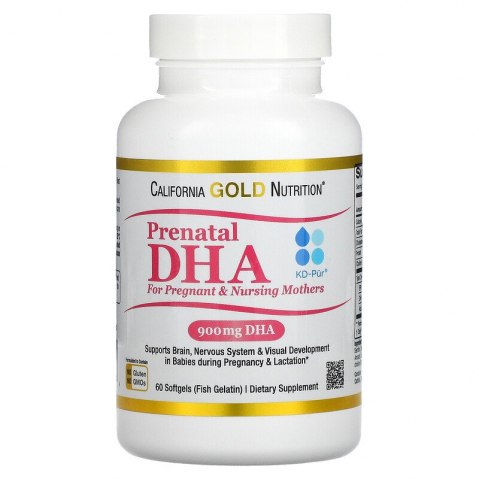 ДГК — наиболее часто встречающаяся в мозге жирная кислота; отмечена ее положительная корреляция с такими аспектами здоровья, как снижение риска сердечно-сосудистых заболеваний, правильная работа мозга, а также здоровый воспалительный ответ и разные процессы в организме в целом.* Исследования показали, что достаточный уровень ДГК у матери во время беременности и кормления грудью способен положительно влиять на здоровье мозга и нервной системы, а также развитие зрения у малышей*. Пренатальная ДГК для беременных и кормящих женщин California Gold Nutrition содержит 900 мг ДГК, полученной исключительно из KD-Pür® — концентрата рыбьего жира, переработанного в Германии и получившего 5 звезд по рейтингу IFOS™.