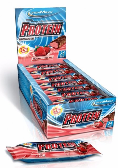 Продукты IronMaxx® изготавливаются из высококачественных ингредиентов, которые всегда отвечают самым высоким из имеющихся требований. По этой причине IronMaxx® является единственным немецким производителем, который в своих протеиновых батончиках вместо низкокачественных коллагенновых протеинов использует уникальную смесь протеинов молока, молочной сыворотки, сои и яичного белка. По сравнению с традиционными шоколадными батончиками, батончики IronMaxx® содержат значительно больше протеина (32%), менее сахара и меньше жиров. Тем не менее, они позволяют ощутить отличное чувство сытости и легко усваиваются, поскольку энергетическая ценность каждого батончика составляет всего 140 калорий. Протеиновые батончики изготавливаются со следующими вкусами: шоколад, ананас-кокос, клубника-йогурт, голубика-ваниль,банан - йогурт. Они поставляются в виде отдельных батончиков или в удобных упаковках по 24 штуки и позволяют обеспечить максимальную эффективность в сочетании со свежим фруктовым вкусом!