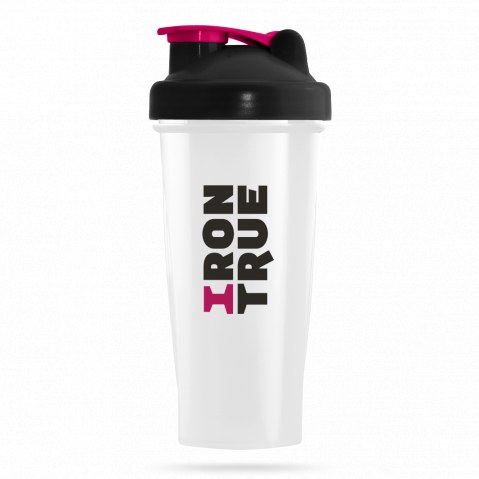 Шейкер от компании IRONTRUE. Удобная крышка. Эксклюзивный дизайн. Служит для приготовления белковых и углеводных коктейлей. Преимущества: Полностью герметичен. Стальной шарик — пружинка для разбивания и размешивания продуктов. Высококачественный пищевой пластик, не впитывающий запахи.