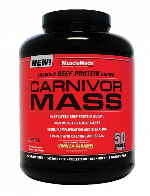 MuscleMeds представляет прорыв в области разработок спортивного питания, гейнер на основе патентованной белковой матрицы CARNIVOR-BPI ™ (Beef Protein Isolate) углеводной супер комбинации iSPIKE ™ содержащий углеводы с разной скоростью усваивания , а так же моногидрата креатина . Carnivor mass практически не содержит жиров и может быть использован как высокоэнергетический продукт даже во время подготовки к соревнованиям по бодибилдингу. Carnivor mass содержит уникальную смесь наиболее биоактивных агентов способствующих увеличению исключительно сухой мышечной массы.