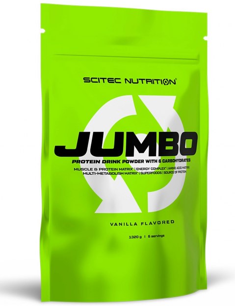 Scitec Nutrition Jumbo – высокоэффективный профессиональный гейнер, содержащий новейший белково-углеводном комплекс. Идеально подходит для всех типов телосложений и не содержит сахара! Scitec Nutrition Jumbo позволяет эффективно восполнять потребности организма в углеводах и белках. Отлично подходит спортсменам, которые стремятся быстро нарастить мышечную массу. Позволяет эффективно поддерживать рост мышц и соблюдать баланс важнейших веществ в организме при длительных или ультраизнурительных тренировках. Scitec Nutrition Jumbo основан на уникальном белково-углеводном комплексе, с каждой порцией поставляющем организму 50 гр белка, быстрые и медленные углеводы, чтобы обеспечить равномерное поступление энергии в течение всего дня. Входящие в состав аминокислоты обеспечивают спортсмену правильный обмен веществ, способствуют снижению утомляемости, повышению выносливости и общего мышечного тонуса. * 50 грамм высококачественного белка в порции! * Улучшенная научно-доказанная анаболическая матрица «Jumbo-Size»! * 6-компонентный углеводный комплекс из быстрых и медленных углеводов, включающий знаменитые формулы Palatinose и Vitargo! * Для всех типов телосложения! Идеальный гейнер для эктоморфов, мезоморфов и эндоморфов! * Никакого сахара!