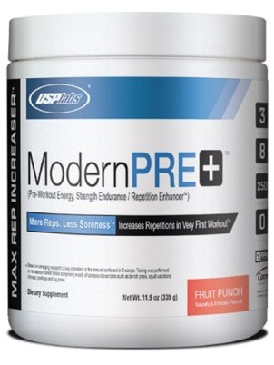 USPlabs Modern Pre - предтренировочный комплекс на основе самых эффективных стимуляторов в оптимальной формуле для продуктивных занятий спортом. Добавка содержит цитруллин, бета-аланин, аргинин, специальную смесь из разных видов креатина, кофеин, энергетические компоненты для ментальной фокусировки, беатин и другие компоненты. Использование Modern Pre оказывает антикатаболическое воздействие, улучшает кровообращение, стимулирует выработку окиси азота, поднимает силовые показатели и повышает выносливость. Цитруллин Малат 2:1: Цитруллин малат 2:1 действует как буфер в организме, помогая выводить аммиак и накопившуюся молочную кислоту. Как итог, повышение общей выносливости и продукции АТФ, тренировка пройдет гораздо интенсивнее! Бета аланин (CarnoSyn®): Бета Аланин связывается с гистидином и образует мощный буфер, позволяющий предотвращать накопление молочной кислоты в мускулатуре. Это выражается в уменьшении ощущений "жжения" мускулатуры во время тяжелых тренировок, что позволяет вам пойти дальше в ваших занятиях! L-Аргинин HCl: Аргинин - аминокислота, отвечающая за поддержку кровотока и повышение уровня оксида азота в организме. Креатин безводный: Креатин безводный это то же самое, что и креатин моногидрат, только без воды. Безводный креатин дает все те же преимущества - выносливость, сила, мощь! Бетаин безводный: Бетаин повышает выносливость, силу и синтез белка. Считается, что работа Бетаина и Креатина синергична и в данном продукте наиболее эффективна, для улучшения производительности организма и уменьшения болевого синдрома. Carb10™: Carb10™ - быстродействующий углевод. Быстрейшее усваивание и чистая энергия! Цитиколин (Cognizin™): Цитиколин отлично подходит для улучшения концентрации внимания во время занятий! Ваши тренировки станут гораздо продуктивнее, ведь вы сможете сконцентрировать всю силу и мощь в единое движение!