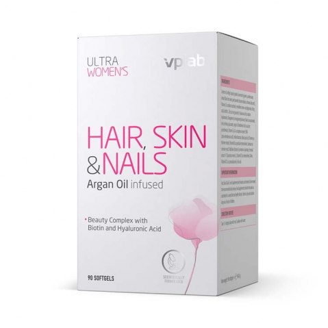 Состав: рафинированное соевое масло, натрия аскорбат, аскорбиновая кислота, эмульгатор Е471, глюконат цинка, натрия гиалуронат, марганца глюконат, ниацинамид, эмульгатор Е322, железа глюконат, аргановое масло, кальция пантотенат, альфа-токоферола ацетат, параминобензойная кислота, битартрат холина, альфа-липоевая кислота, тиамина мононитрат, пиридоксина гидрохлорид, селен содержащие дрожжи, рибофлавин, ретинола пальмитат, экстракт травы хвоща полевого, биотин, фолиевая кислота, холекальциферол, цианокобаламин, желатин, агент влагоудерживающий Е422, вода, красители: Е172, Е171, Е129. Пищевая ценность (средние значения) в 1 порции - 1 капсула (в % от Рекомендуемого уровня суточного потребления/адекватного уровня потребления*): витамин С – 30 мг (50%), витамин РР - 2,34 мг (13%), витамин В6 - 1,67 мг (83,5%), витамин В2 - 1,67 мг (104%), В1 - 1,67 мг (119%), Е - 3,35 мг (33,5%), фолиевая кислота - 66,7 мкг (33%), витамин В12 - 2,7 мкг (270%), биотин - 150 мкг (300%), витамин Д3 - 15 мкг (600МЕ) (300%), пантоте